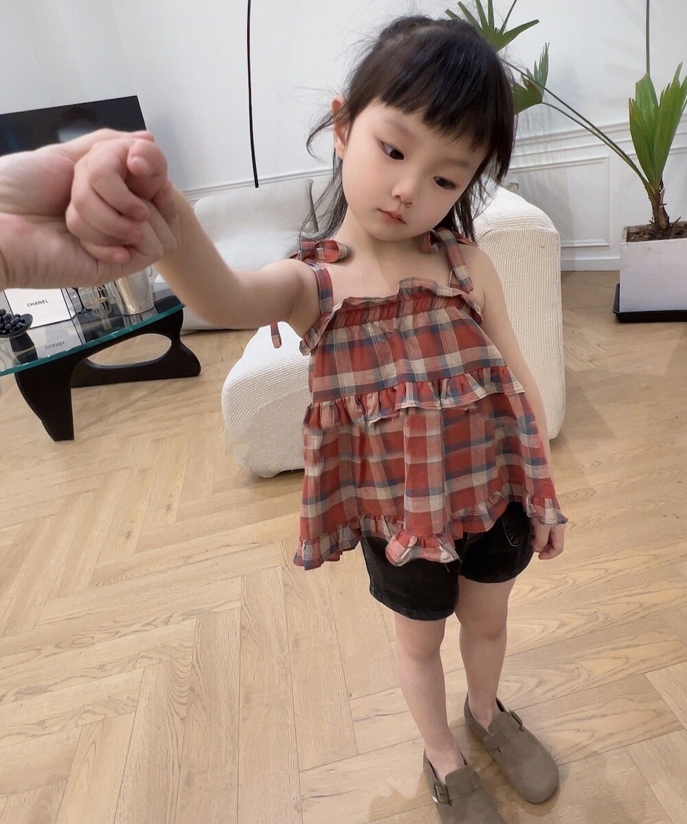 大きめチェック柄がかわいい2段フリルキャミソールワンピースです。