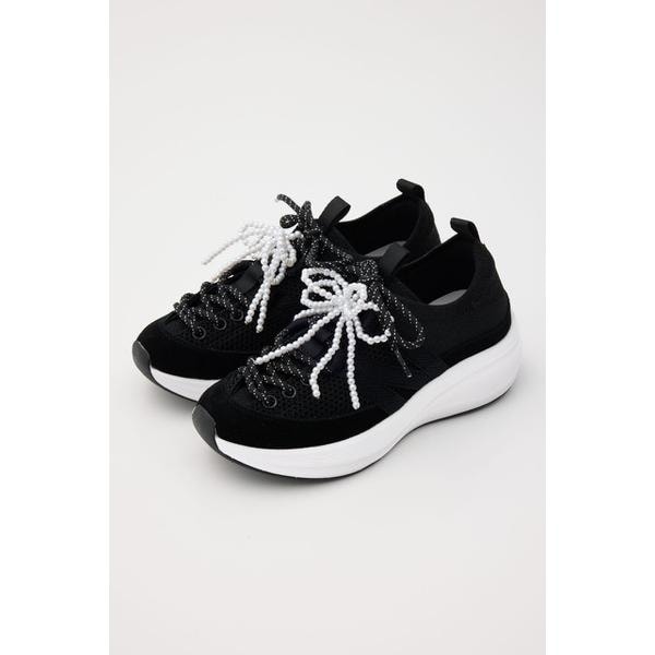 STACCATOらしいデザインがきいた甘辛スリッポン。カジュアルなレースアップスリッポンにパールリボンを装飾したオリジナリティ溢れる1足。レザー×ニット×テープリボンなどディテールをぎゅっと詰め込んだユニークなデザインが優秀。足あたりソフトなニット地にスニーカーソールで軽量&軽快な履き心地です。また、パール装飾は取り外しも可能なので、気分やスタイリングに合わせて付け替えができるのもうれしいポイントです。※パール装飾の引っ掛けや衝撃・破損等にご注意ください。