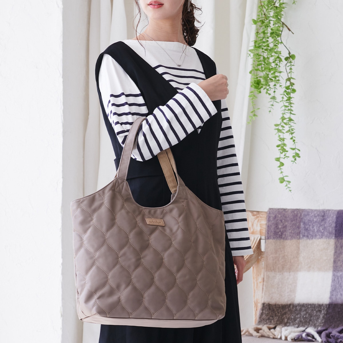スタイルオンバッグふっくらキルティングバッグ 撥水加工2WAYトート スモ―クブルー