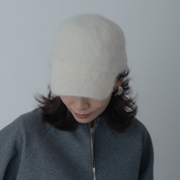 温かみのある素材とシンプルなフォルムが特徴のファーキャップ。
