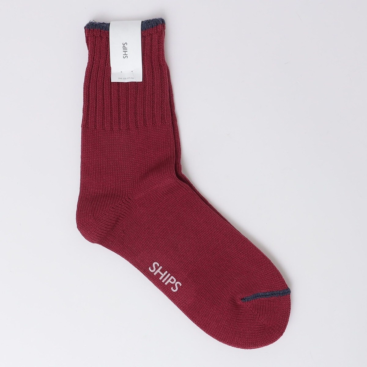 フィット感を高めるリブ編のソックス。