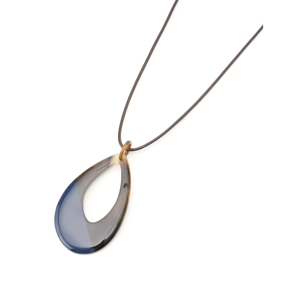 エレガントなドロップシェイプのモチーフが目を惹くコードネックレス。マーブル調の美しい質感に配色のアクセントを加えることで、モダンなエッジを効かせたデザインに仕上げました。さりげなく身に着けるだけでアートピースのような魅力を放つ、大人のためのアクセサリーです。コード部分はスライド式のアジャスターを備えており、シーンやスタイリングに合わせて長さの調整が可能です。