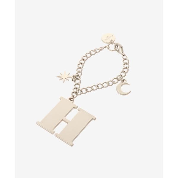 ◇SAMANTHAVEGA(サマンサベガ)のムーンイニシャルチャーム(H)三日月モチーフのパーツがセットされたイニシャルチャーム。存在感のある字体とボリュームなのでバッグのアクセントに。プレゼントにもオススメです。