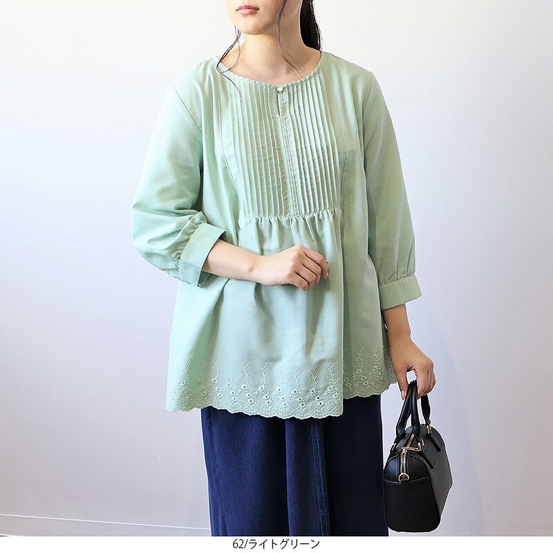 【大きいサイズ】【WEB/一部店舗限定】 ビンテージクロスタックギャザーブラウス