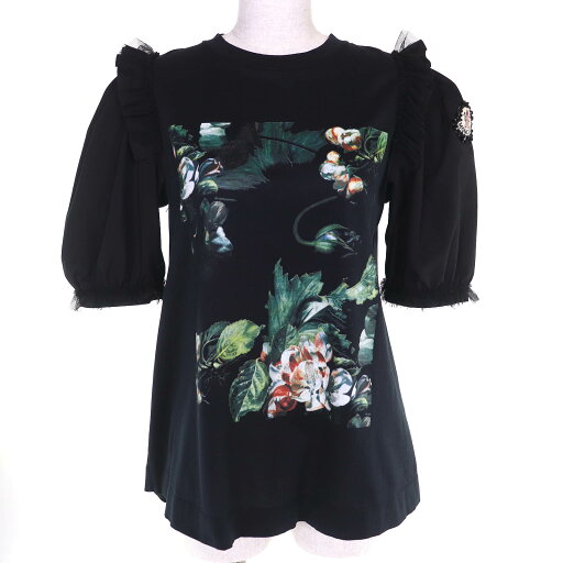 極美品☆GIVENCHY ジバンシィ コットン100% 袖ロゴ刺繍 裾デザイン 半袖Tシャツ トップス ホワイト XS イタリア製 正規品 レディース【中古】
