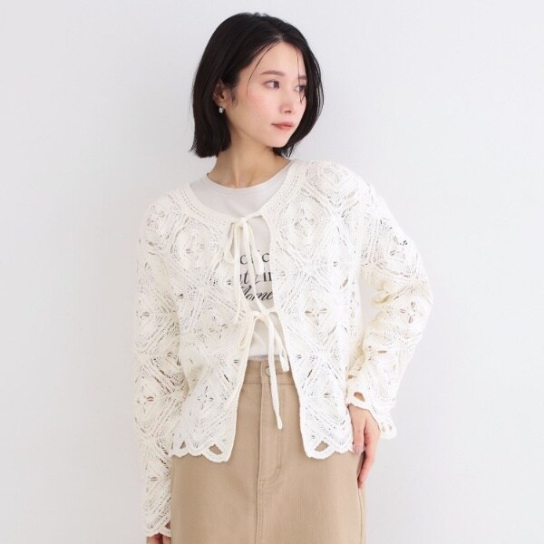 かぎ針風のモチーフ柄が可愛いニットカーディガン