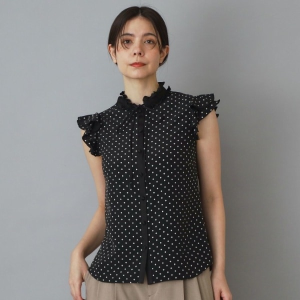 クラシカルなムード漂うドット柄を全面に使用した、存在感のある主役ブラウス。