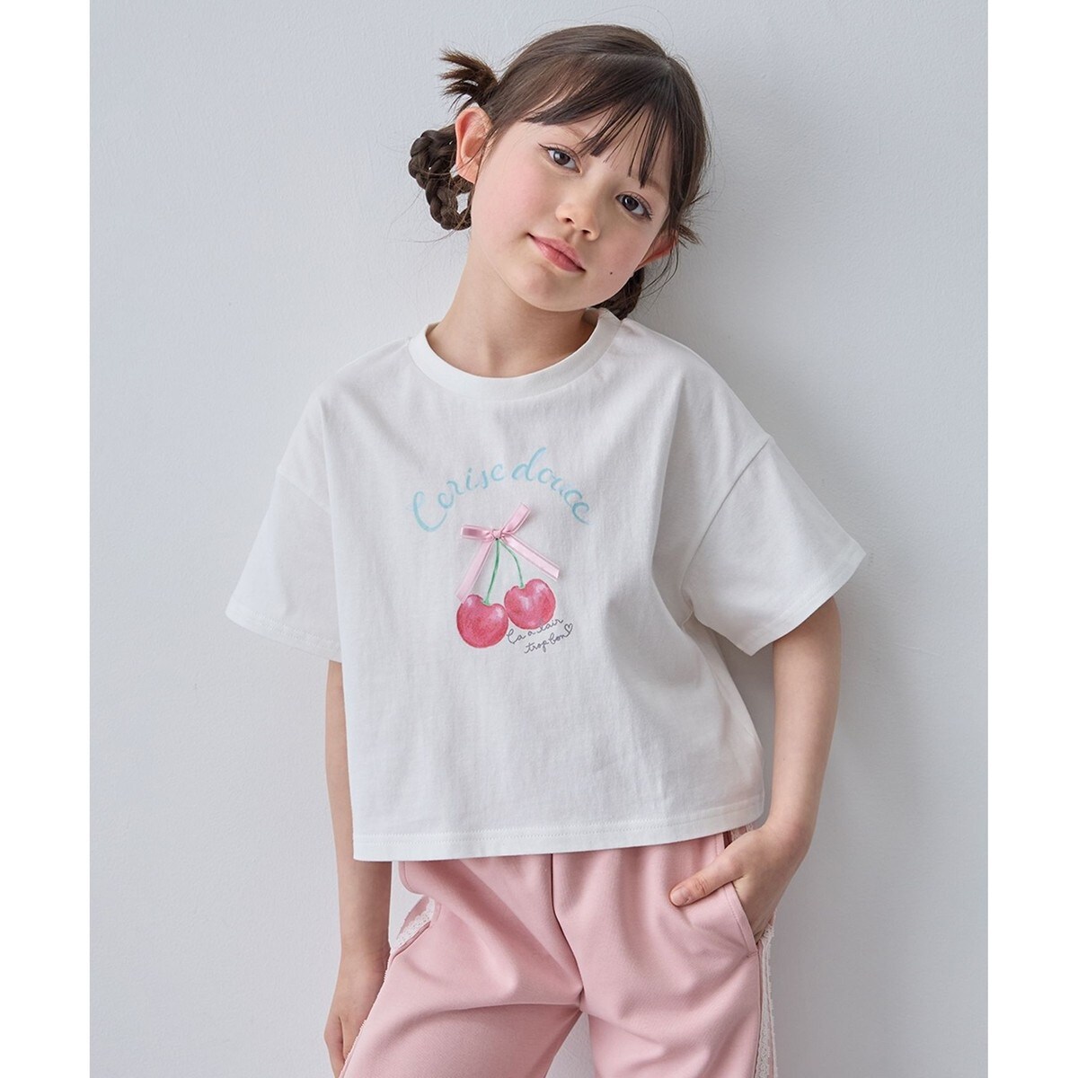 ANY KIDS/エニィキッズ/any FAM/any FAM KIDS/エニィファム/エニィファムキッズ/キッズ/トップス/半袖/Tシャツ/丈短/クロップド丈/さくらんぼ/チェリー/フルーツ/リボン/コットン/通園/通学/おでかけ/デイリー/女の子/ガール/サスティナブル商品/トレンド