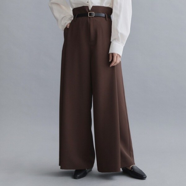 ハイウエストデザインとタックプリーツ使いでモードな印象のワイドパンツ【セットアップ対応可能】