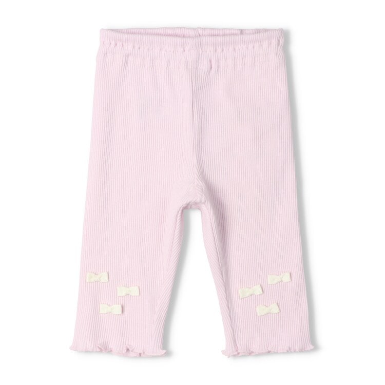 伸びの良いリブ素材を使用した、着まわしやすいレギンス、スパッツ。小さなリボンを散りばめて、シンプルながらもコーディネートのポイントになる1枚です。優しいピンクとラベンダーのカラーでデイリーにもギフトにもオススメ!【アイテム】プレゼント ギフト 出産祝い お誕生日祝い バースデー 赤ちゃん服 ベビー服 贈り物 ボトムス 無地 シンプル ガーリー カジュアル お洒落 オシャレ かわいい 可愛い 普段着 デイリーウェア お出かけ着 ハーフパンツ 短パン 半パン 半ズボン ボトムス 子ども こども 女児 女の子 ガールズ キッズ ベビーサイズ 幼稚園 保育園通園 2026年春夏物新作 丸高衣料 薄紫色 キッズズー コットン100% 綿100%
