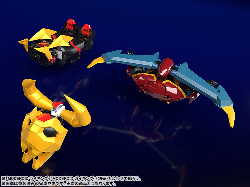 TVアニメ『ガイキング LEGEND OF DAIKU-MARYU』より、灼熱の重巨人「バルキング」がプラスチックモデルになって再登場!劇中さながらのスタイルで造形されたリアルモデル。各関節可動、グランドアックス付属。肩部ギガンタークロスは脱着可能。下半身は再現用パーツを使用し「バルキング パート2」に変形可能。別売の「ガイキング」「ライキング」と組み合わせる事で、究極の炎の巨人「ガイキング・ザ・グレート」への合体及び合体シークエンスを再現する事ができます。赤、黒、グレー、金の4成形色と彩色済みパーツおよびシールにより、組み立てるだけでイメージに近い色分けを再現できます。