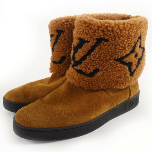 極美品★LOUIS VUITTON ルイヴィトン スノーボールライン モノグラム柄 ロング ムートンブーツ ブラウン 36.5 イタリア製 レディース【中古】