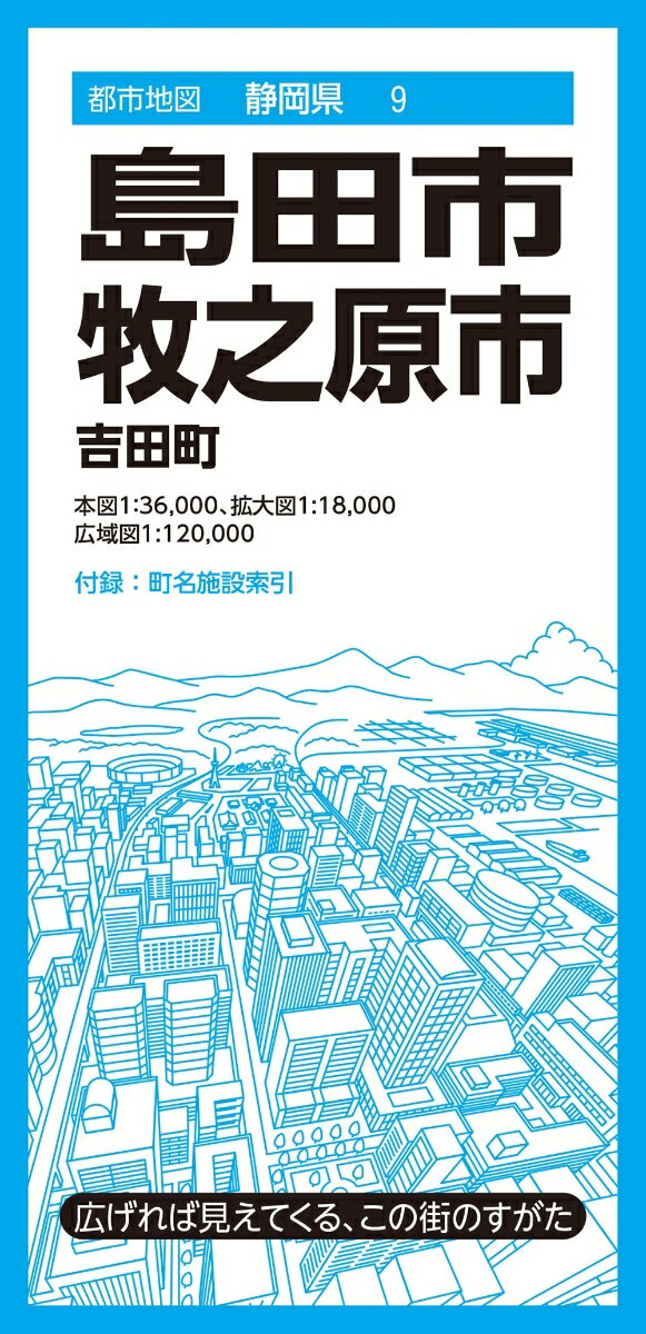 『都市地図』は、広げて見るシートタイプの都市詳細地図です。全国約1000市町村をラインナップしています。日常利用に幅広く応える、お役立ち情報が満載です。●商品概要【本図】島田市主要部、牧之原市全域、吉田町全域 1:36,000【拡大図】島田駅周辺 1:18,000【広域図】島田市、牧之原市、吉田町 1:120,000【付録】町名索引、施設索引(役所、官公署、公共施設など)●サイズ商品のサイズ88×62.5×0.01cmパッケージのサイズ10.3×21.3×0.85cm●シリーズ特長・広げれば見えてくる、街のすがた1枚の大判紙で市町村の姿が一目でわかり、日々の暮らしに役立つ情報や街の特徴を表現した市町村案内地図です。・街の基本情報を忠実に表現道路や鉄道、住所、公共施設、商業施設、自然地形など地図としての基本情報を忠実に表現。コンビニやファストフード、ガソリンスタンドなどはロゴマークを記号化することで直観的に識別できるようにしています。・町名施設索引付き町域で色分けされた地図と町名索引で、場所の検索も容易です。・様々な利用シーン営業やエリアマーケティング、不動産業務、分布図作成、地域の防犯・防災マップ作成、入学祝いや引越し祝いの贈答品に