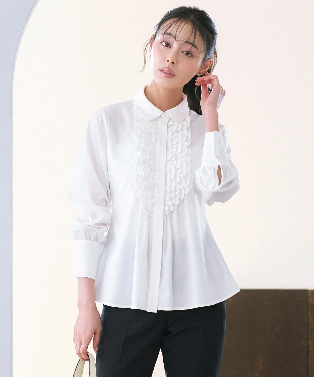 【洗える】フリルシャツブラウス