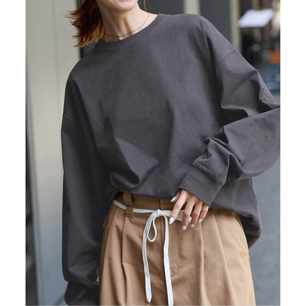サイズ感:身体のラインを拾わないシルエット。前後ろで着丈の長さが違うので、後ろはヒップが隠れるくらいです。