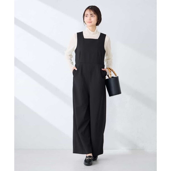 すっきりとした身頃とゆとりのあるワイドシルエットのオールインワンです。