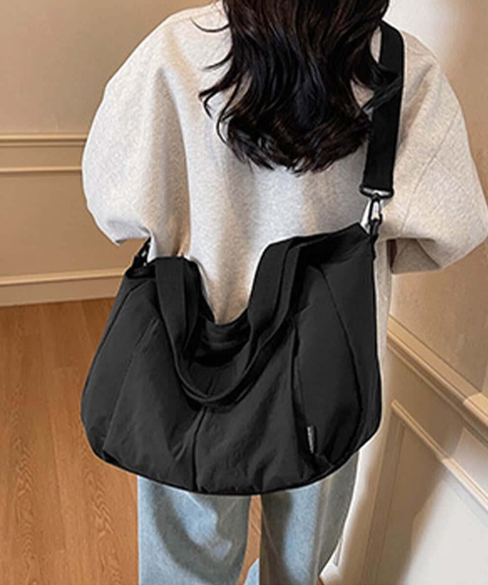 収納力に優れた大容量デザインが魅力の、ナイロン素材ショルダーバッグ。