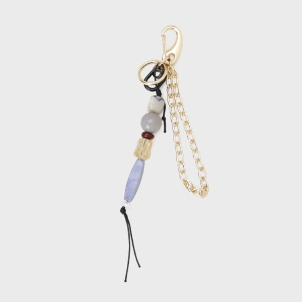 ニュアンスカラーのマーブル調ビーズを連ねたスリムなバッグチャーム。