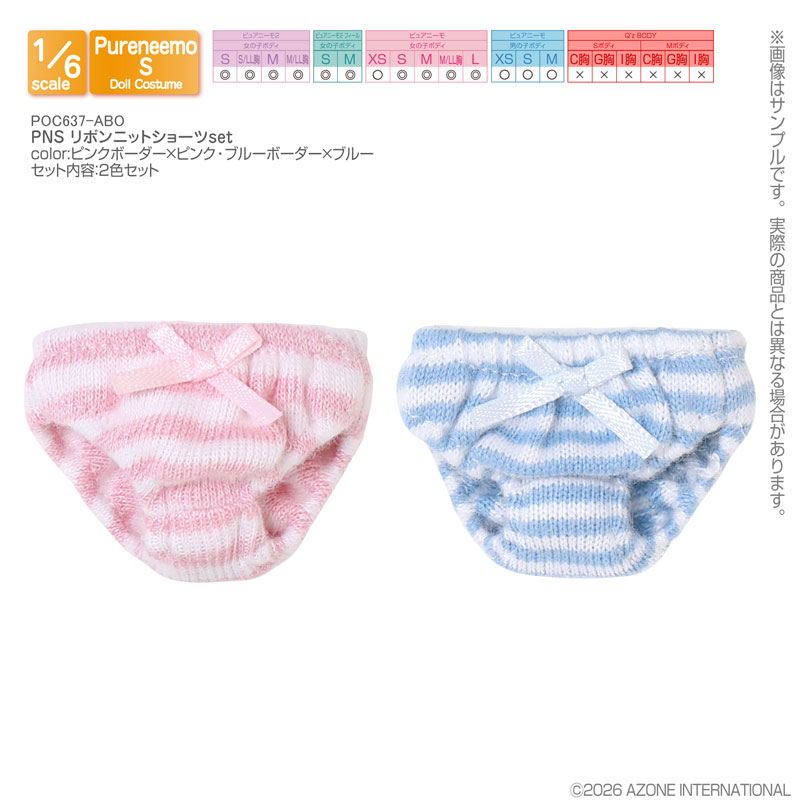 【対応ボディ】ピュアニーモ2女の子(S:◎ S/LL:◎ M:◎ M/LL:◎)、ピュアニーモ2フィール女の子(S:◎ M:◎)、ピュアニーモ女の子(XS:◯ S:◎ M:◎ M/LL:◎ L:◎)、ピュアニーモ男の子(XS男:◯ S男:◯ M男:◯)、Q’z BODY(S/C:× S/G:× S/I:× M/C:× M/G:× M/I:×)