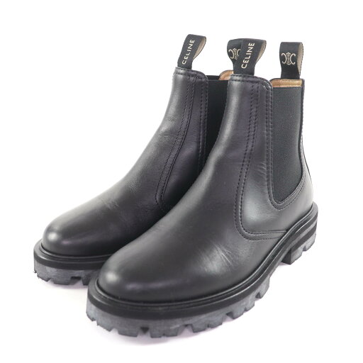 極美品◇CELINE セリーヌ CWZA09 トリオンフビット ウッドソール レザー サボ サンダル ブラック ゴールド金具 35 イタリア製 レディース【中古】