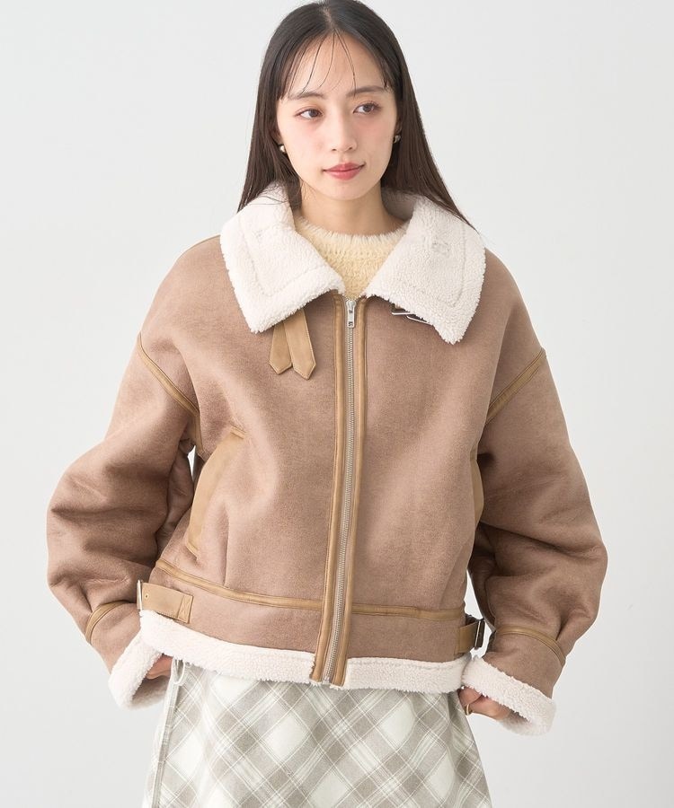シーズンムード高まる今季注目のフェイクムートンジャケット。滑らかなフェイクムートンにボアを合わせたカジュアルな雰囲気が魅力です。裾タックを施したほんのり丸みのあるフォルムが女性らしさをプラス。衿のダブルベルトを閉めれば首元まで暖かく、寒い季節の防寒もバッチリです。フェミニンなスカートやシアー素材などを合わせたMIXスタイリングもおすすめ。