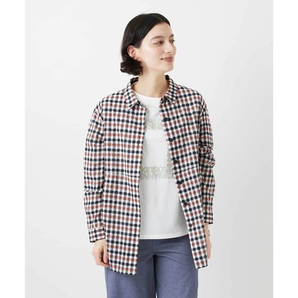 オリジナルチェック柄は派手すぎず上品な配色なので顔まわりを明るく見せてくれるカラーバリエーションです。コットン100%なので、さらりとした着心地は、春は一枚着、カーディガンを羽織ったレイヤードスタイリング、Tシャツやタンクトップなどをあわせて夏の羽織りとしても活躍します。合わせのボトムはすっきりとしたシルエットがおすすめ。軽やかなスタイリングが叶います。