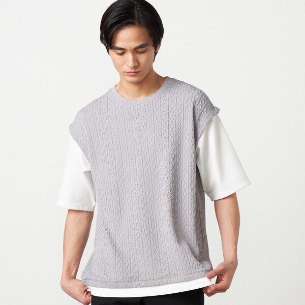 ベストとTシャツをレイヤードしたようなデザインのフェイクレイヤードTシャツです。