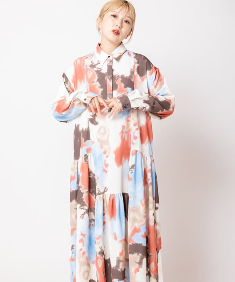 フラワープリントタックワンピース 花柄ロングスリーブ