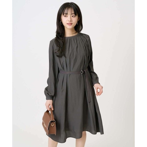 ネックと肩に細やかなギャザーを施し、歩くたびにきれいに揺れるドレープ感が大人の雰囲気漂う、ギャザーワンピース。緩く立ち上がったバンドカラーが首周りをすっきりとみせてくれます。ウエストは付属のベルト付き。