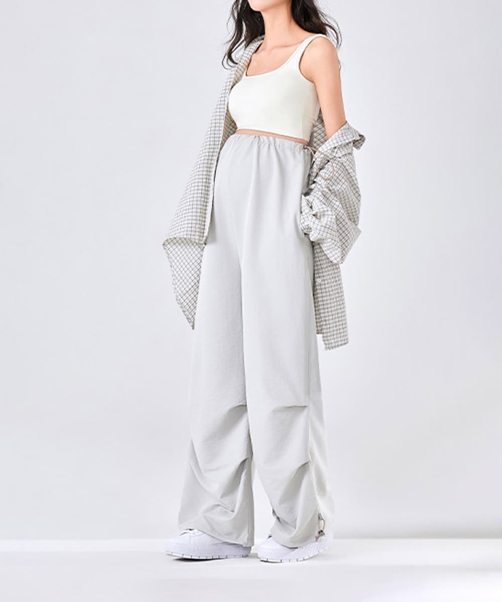 さらりとした肌触りの軽やかな素材で、快適な穿き心地。体型を選ばずリラクシーに着こなせるのがポイントです。