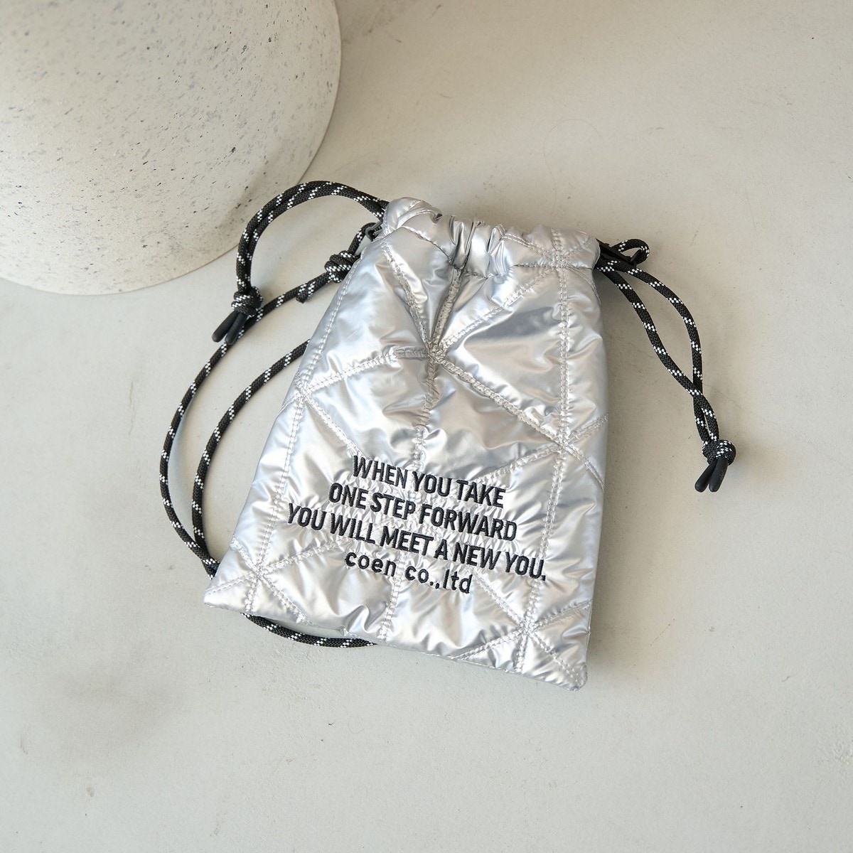 ロゴ刺繍 幾何柄 キルト巾着ショルダーバッグ(品番:76816000036)