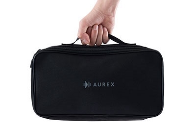 聴き終わった後はサッと収納できる。持ち運びに便利なハンドル付き専用収納バッグが付属しています。