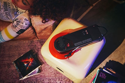 ・レコードが今すぐ始められる、かんたんワイヤレスモデル。ワイヤレスのアクティブスピーカーやヘッドホンと接続すれば 、あとは好きなレコードを挟んで楽しむだけ。