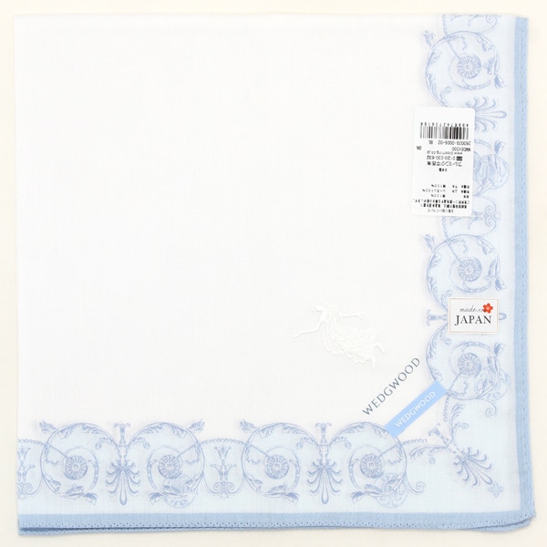 ウェッジウッド を代表するストーンウェア【ジャスパー】をモチーフにしたプリントハンカチです。ギリシャ神話の女神の刺繍が施されています。