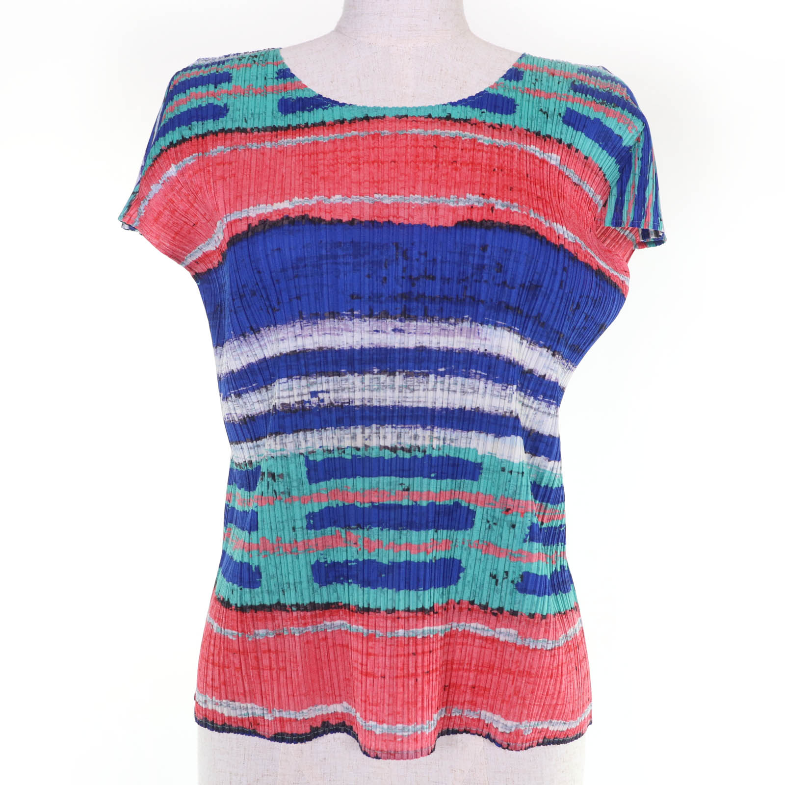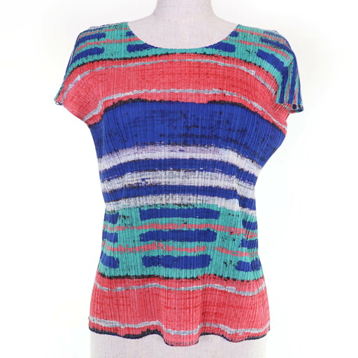 極美品☆PLEATS PLEASE プリーツプリーズ イッセイミヤケ PP73-JK531 半袖 カットソー マルチカラー 3 日本製 正規品 レディース【中古】