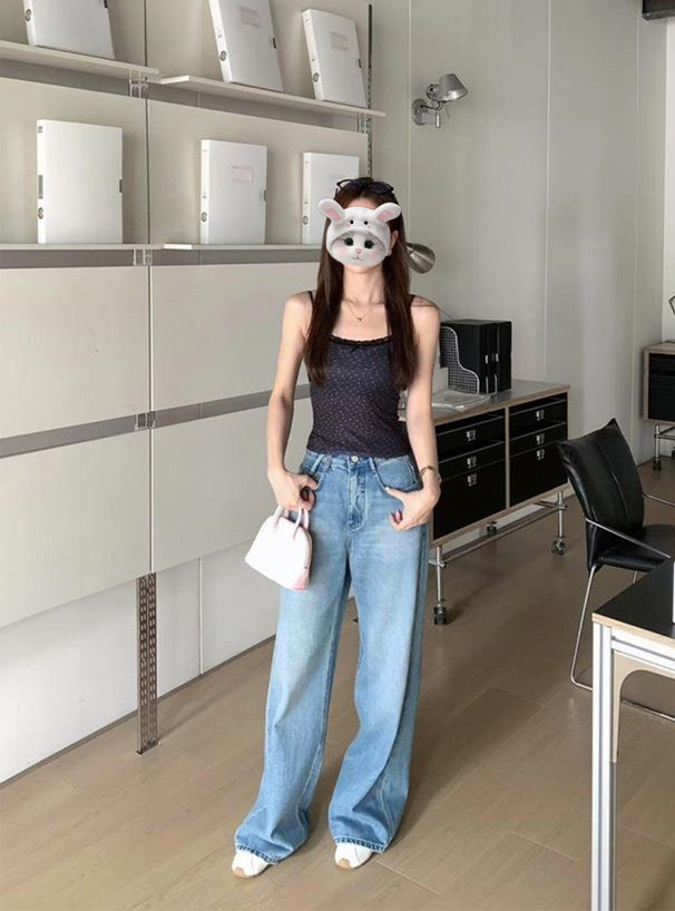 胸元のレースとリボンのワンポイントがガーリー要素を添えるポイント。