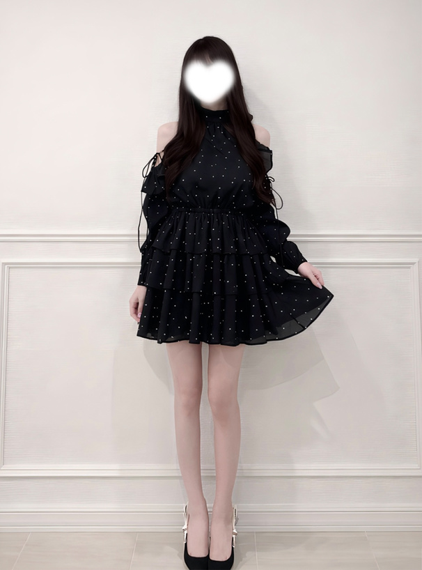 3段にティアードしたスカート部分も特徴で、ふんわり広がったフレアシルエットがキュート。