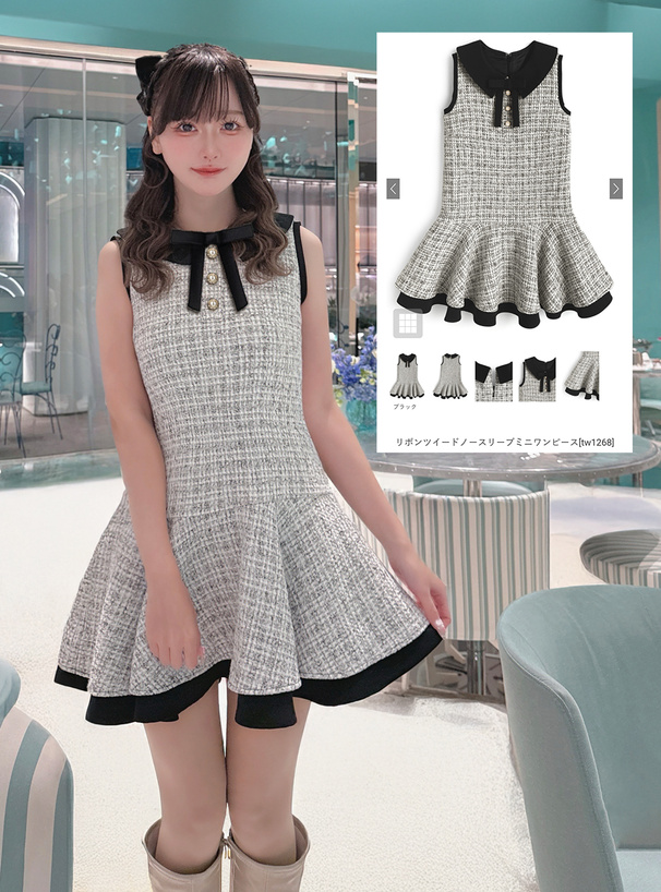 上質なツイード調素材で仕立てた上品さ漂うミニワンピース。