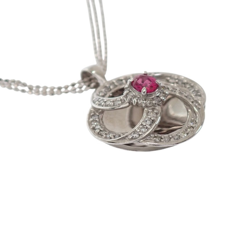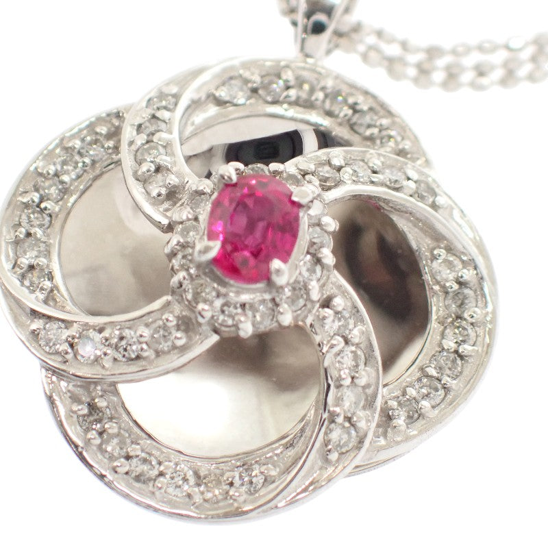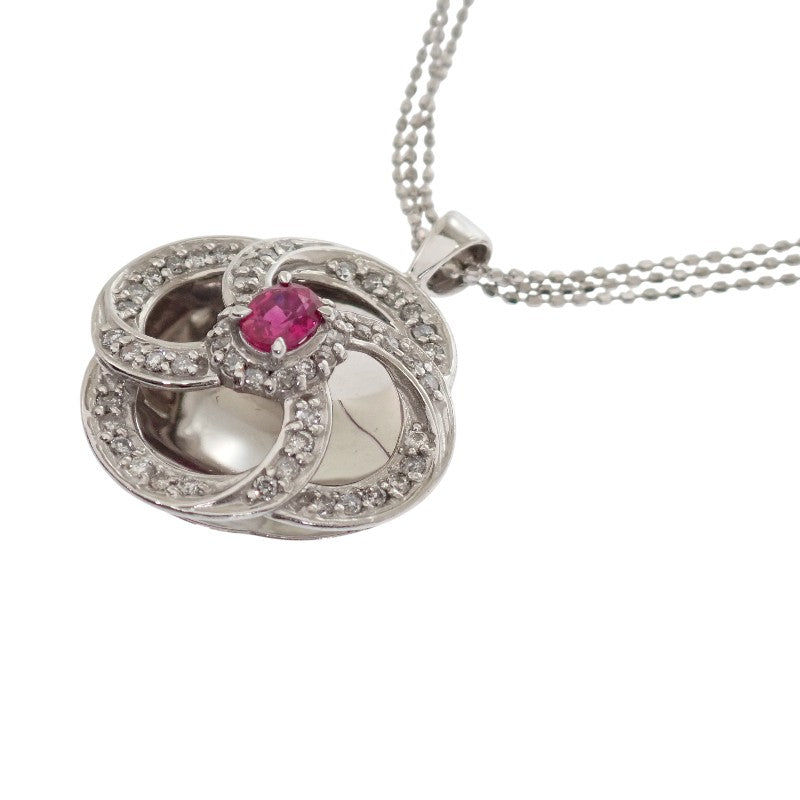 鮮やかな赤色のルビーと高貴なダイヤモンドのコントラストが美しい18金ホワイトゴールドネックレスです。
