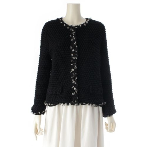 DOLCE & GABBANA ノーカラージャケット ブラック ドット ニット