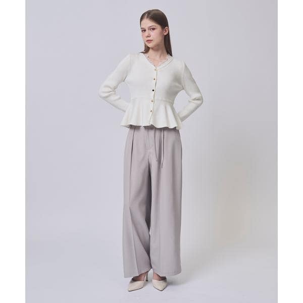 【オンもオフも頼れる!着回し自在なタックワイドパンツ】【Point】・毎シーズン人気の定番ワイドパンツがスッキリ見えるタックデザインに。・シンプルで洗練されたシルエットはクラシカルでありながらほんのりモードな印象に。・長すぎない丈感でフルレングスパンツにありがちな靴の合わせにも悩まずに着用いただけます。・ウエストリボンがトップス問わず、メリハリのあるスタイリングを叶えます。・ウエストリボンは取り外し可能。固定ループを施し、着用中もズレにくく美しいバランスをキープします。・シンプルながらも着心地と使いやすさにこだわった1枚です。ケア方法:手洗い可能透け感:なし裏地:あり伸縮性:あり光沢感:なし生地の厚さ:中肉