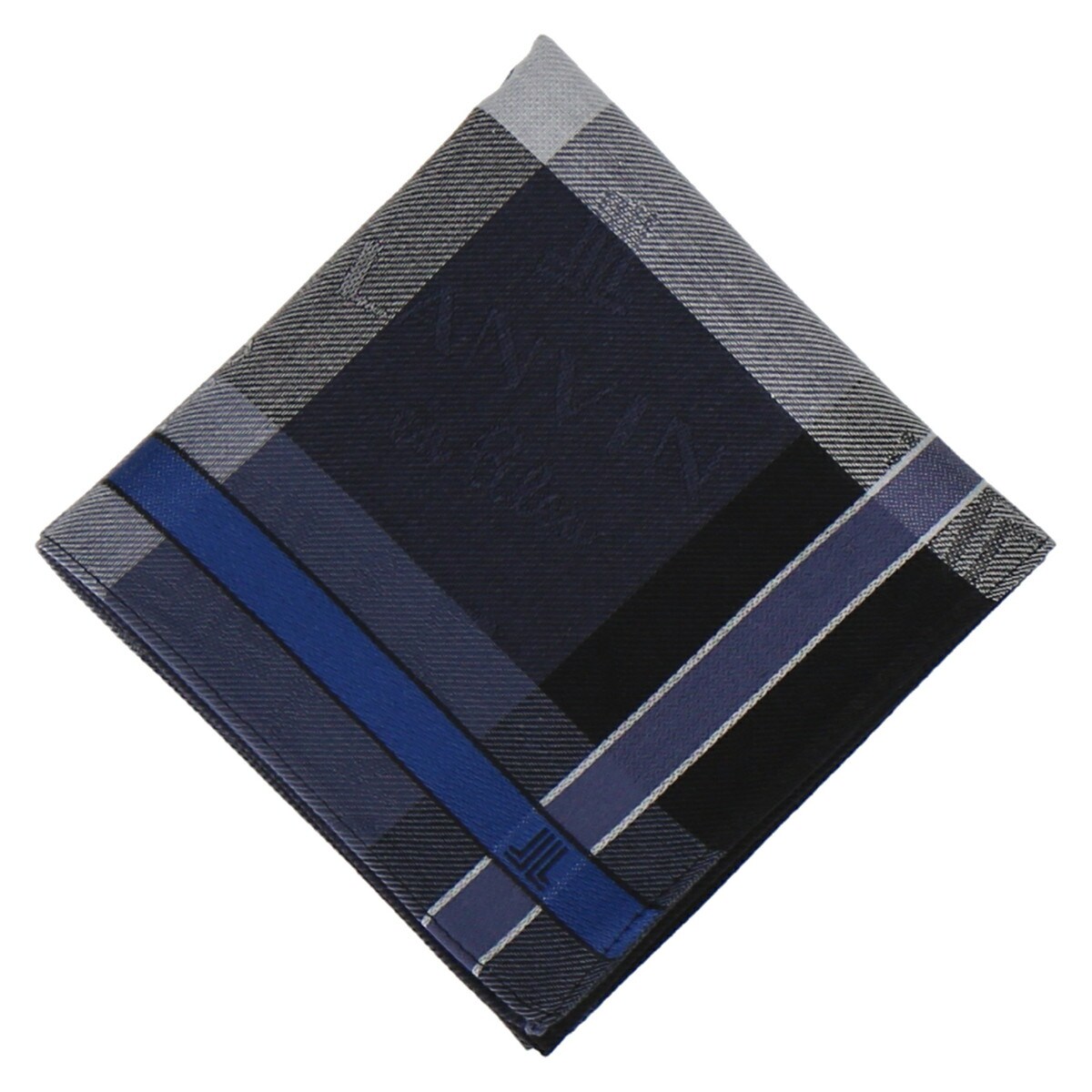 春夏らしいカラーの大きめチェックに「ダブルJLマーク」やロゴがさりげなく浮かぶお洒落な先染めハンカチ。