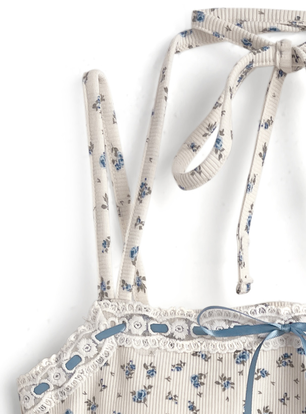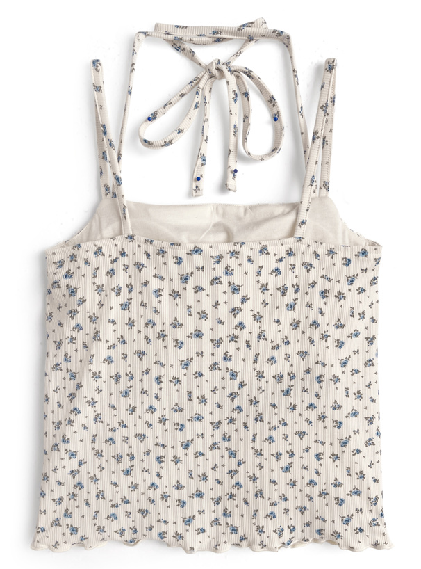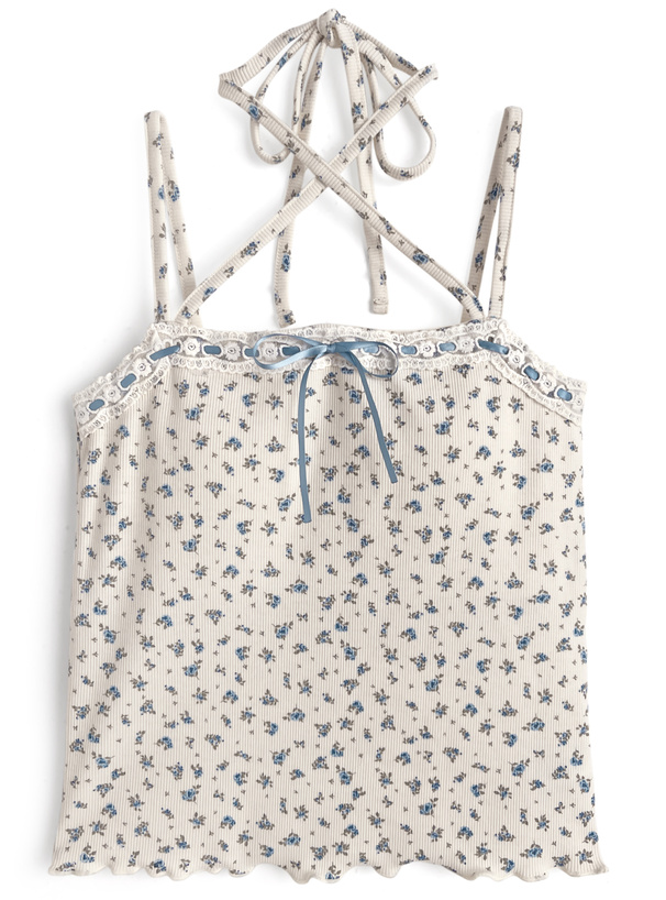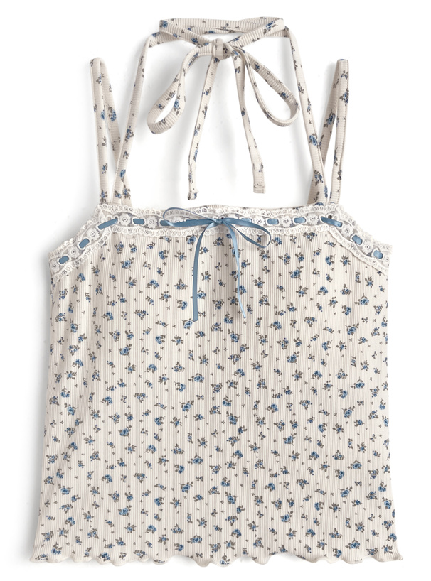 小さめのフラワー柄をあしらったガーリーな雰囲気漂うキャミソール。