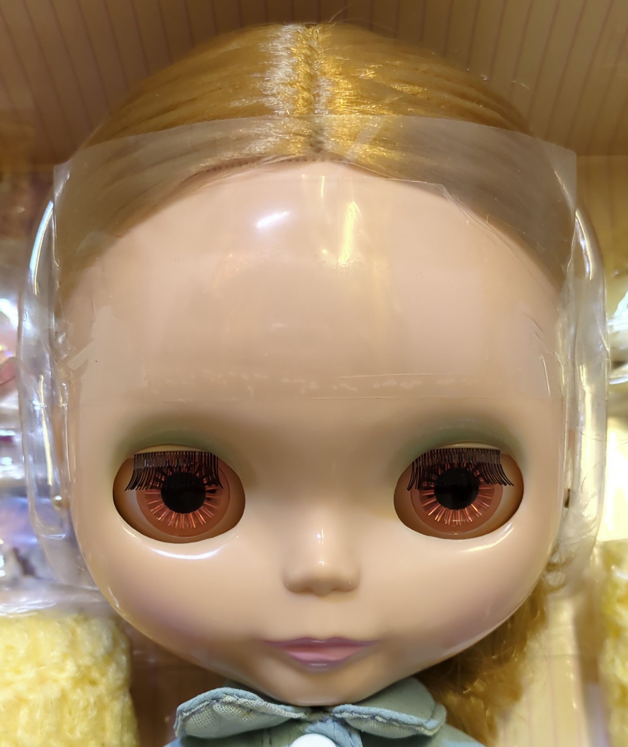 商品状態: (8)/未使用(元から箱にテープ留めはありません)/扉テープヤケ・汚れ/ウインドウ右側シミ/パッケージ全体的にヤケて色褪せ、角スレ・潰れ・汚れ/靴劣化で溶け/コート合皮劣化