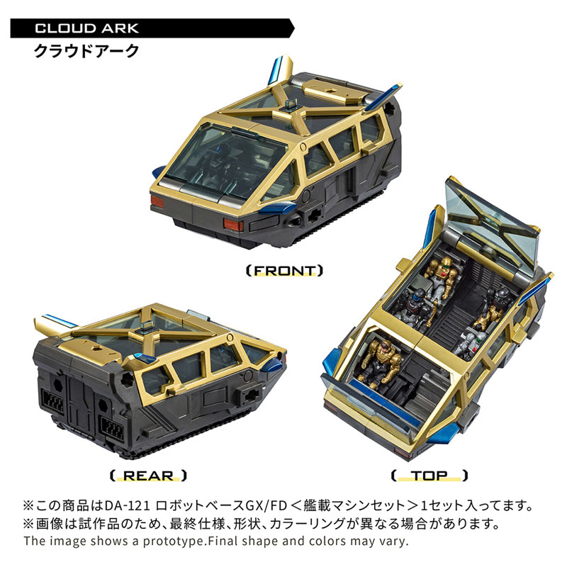 各艦載マシンにはダイアクロン隊員が搭乗することが可能。そして、各艦載マシンは単騎での行動が可能となっており、「DA-120 ロボットベースGX〈ロイヤルディフェンダー〉」と組み合わせることで、格納庫への格納をはじめ、様々なバトルシチュエーションを想定することが可能となっている。