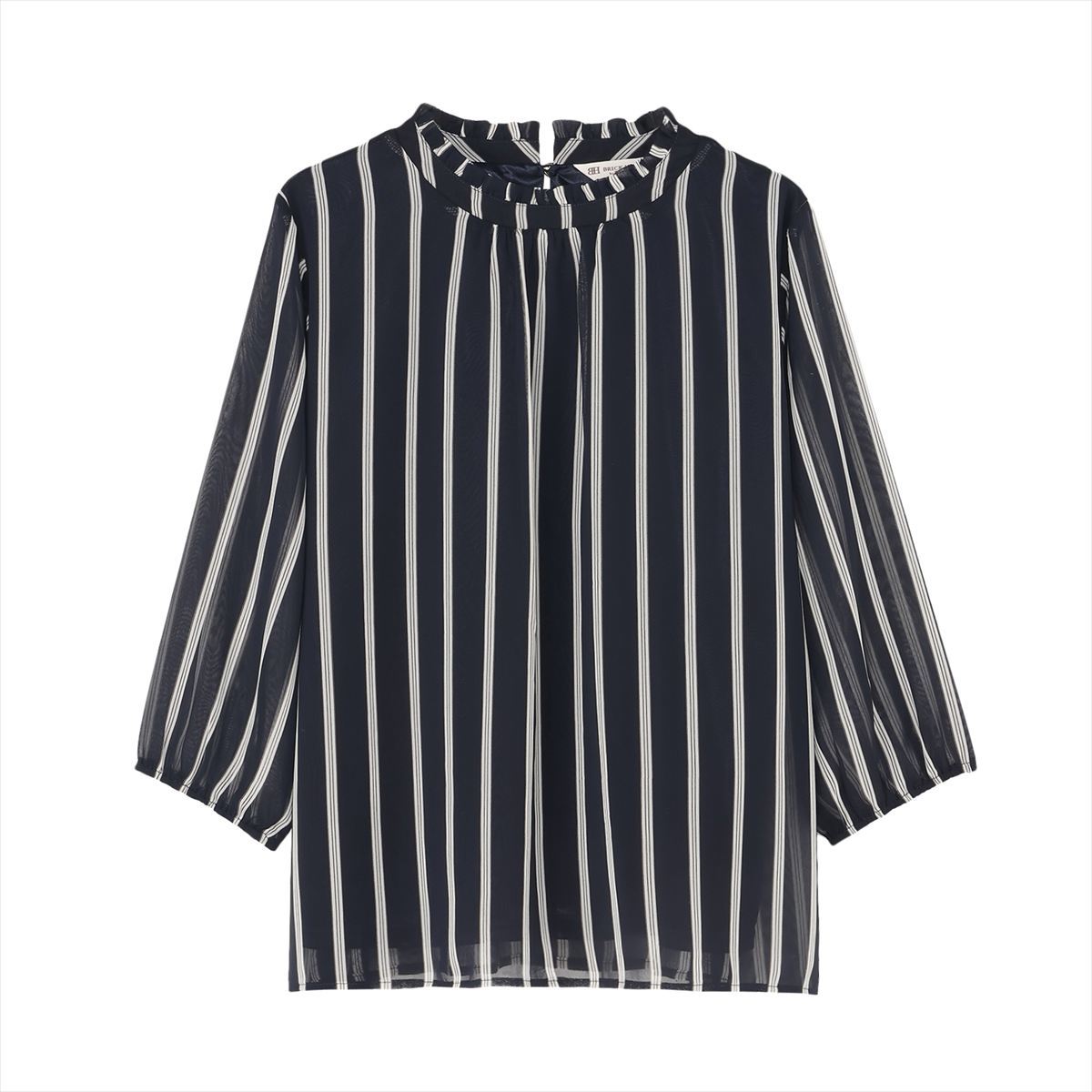 【AA1084】 トゥエルブアジェンダ M カットソー ブラウス ネイビー 7部丈 かわいい レディース オールシーズン ストライプ シアー シフォン
