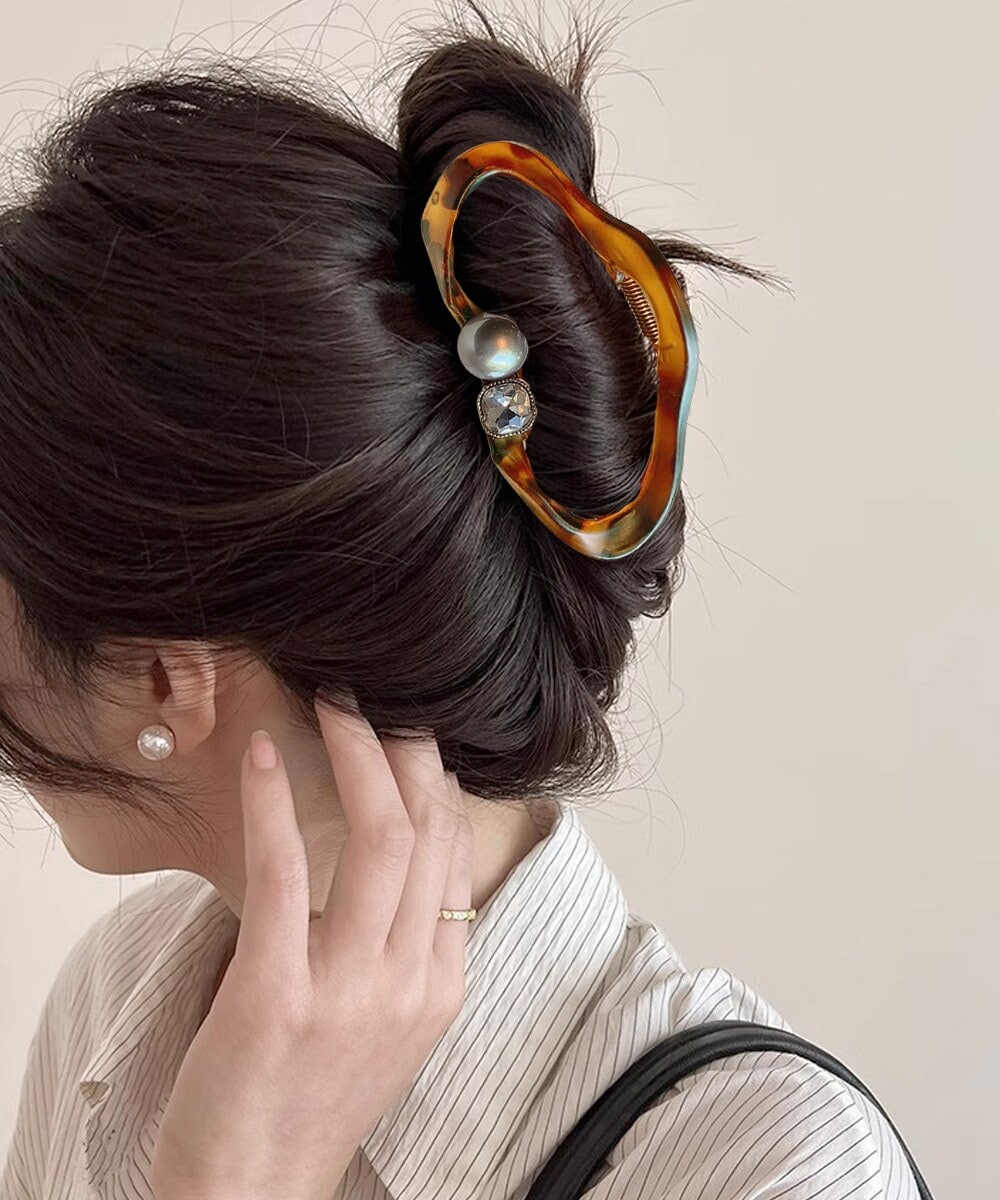存在感のあるビッグフェイクパールが目を引く、トレンド感たっぷりのバンスクリップ。