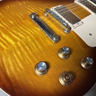 美しいフィギュアドメイプルトップと厳選されたウェイトリリーフなしのマホガニーバック、ローズウッド指板、そしてピックアップには程よいパワーとクリアなサウンドが特徴のヴィンテージPAFレプリカ、バーストバッカー61を搭載。ネックシェイプはスリムテーパーを採用することでハイポジションまで高い演奏性を獲得。ウッディでタイトな鳴りを活かしたクリーントーンから太く芯のあるドライブサウンドまでレスポールらしさ満載のサウンドが魅力。基盤を使わない配線やオレンジドロップコンデンサーなど内部まで伝統的仕様を重視した2019年ニューモデルの中でも大本命の1本です。ハードケース、アクセサリーキット付属。