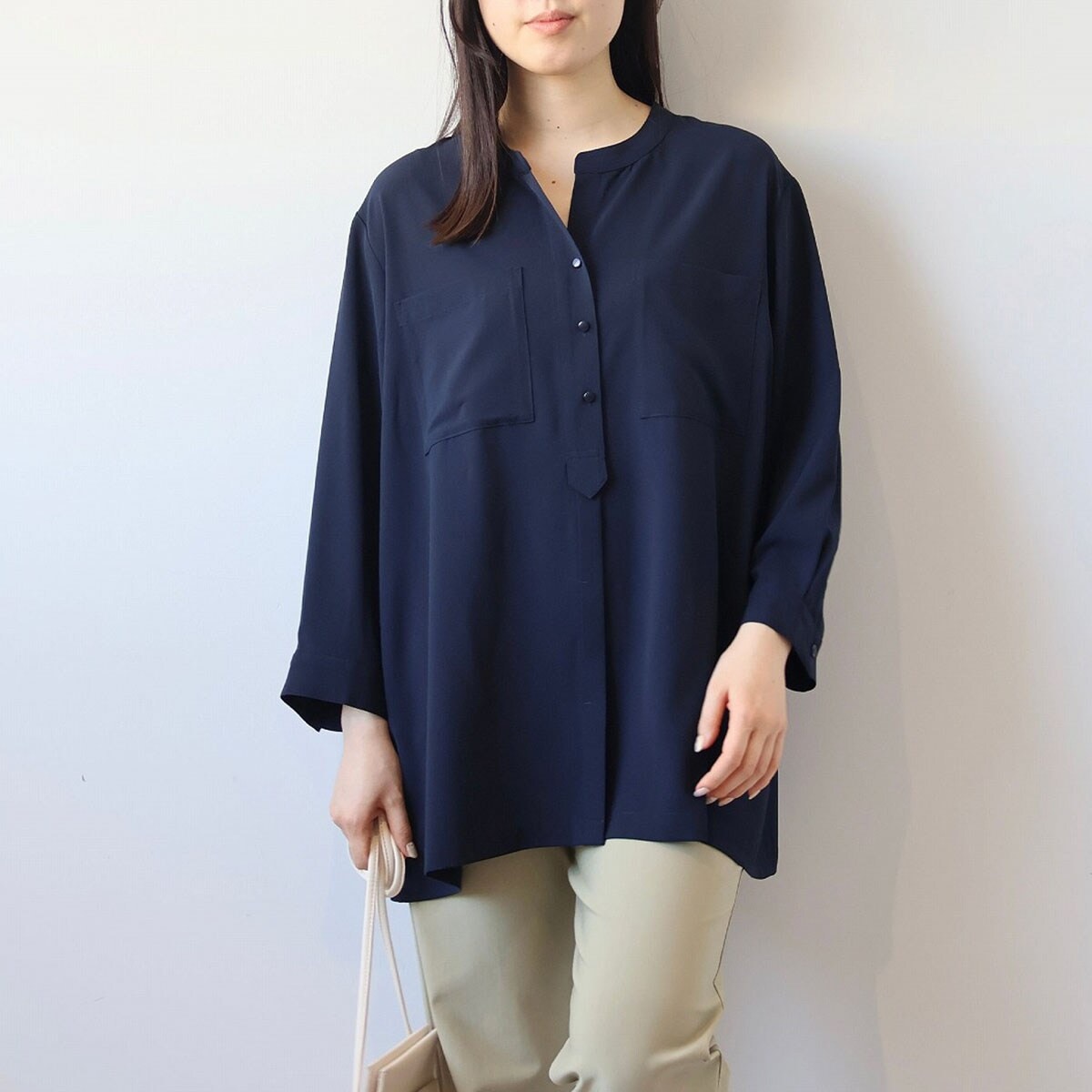 【大きいサイズ】フリル ポケット レギュラーヵラー シャツ