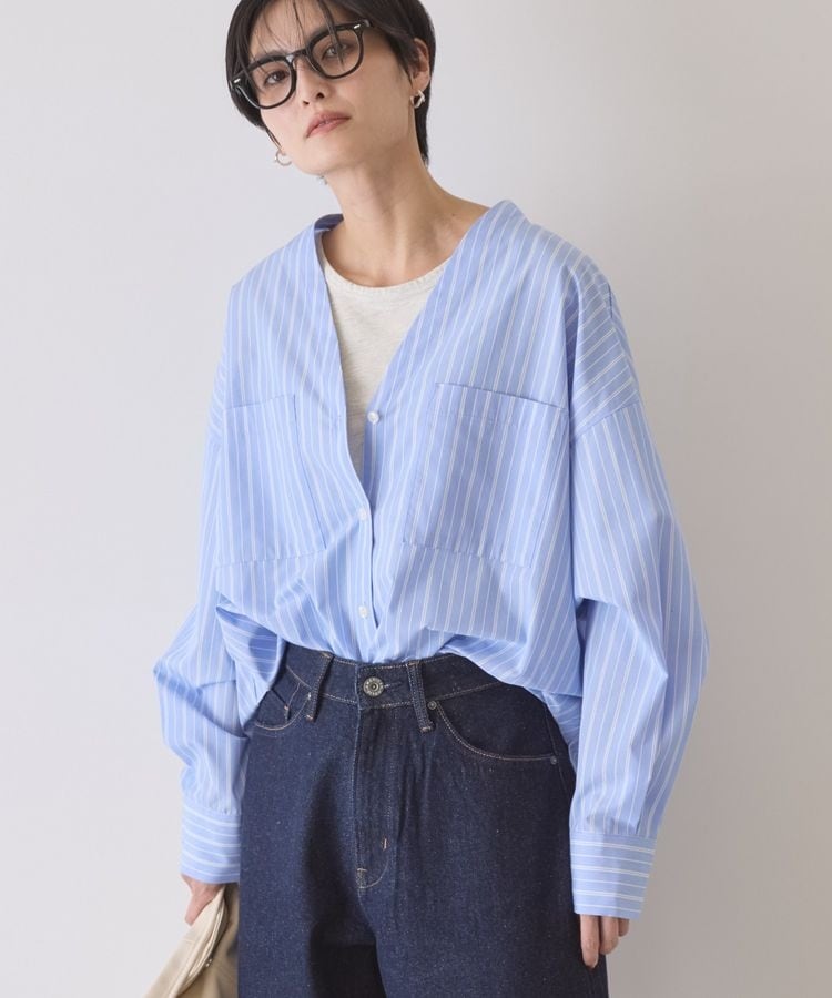 ✺ イージーケア ストライプシャツ フリー 体型カバー